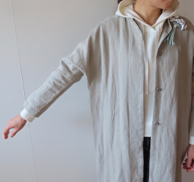 ・evam eva「raising linen coat」sage